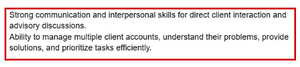 E.g., “Proficiency in QuickBooks and Bill.com required” |